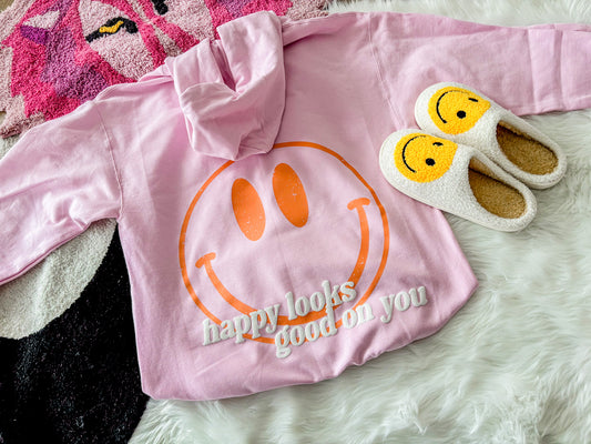 Happy Looks Good On You - Puff Effect Unisex Hoodie *Pink Hoodie Exclusive*